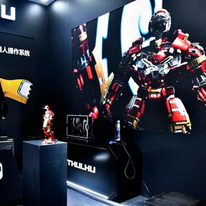 8月24日,在青島召開的2023年中國網(wǎng)絡視聽精品創(chuàng)作峰會上,智能視聽沉浸式體驗展區(qū)在展示專業(yè)影視機器人。新華社記者 郭緒雷 攝