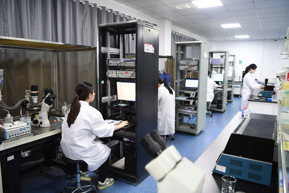 在位于開(kāi)封的河南省貝威科技有限公司斯高電生理研究院,工作人員在進(jìn)行膜片鉗操作(2023年6月20日攝)。新華社記者 張浩然 攝