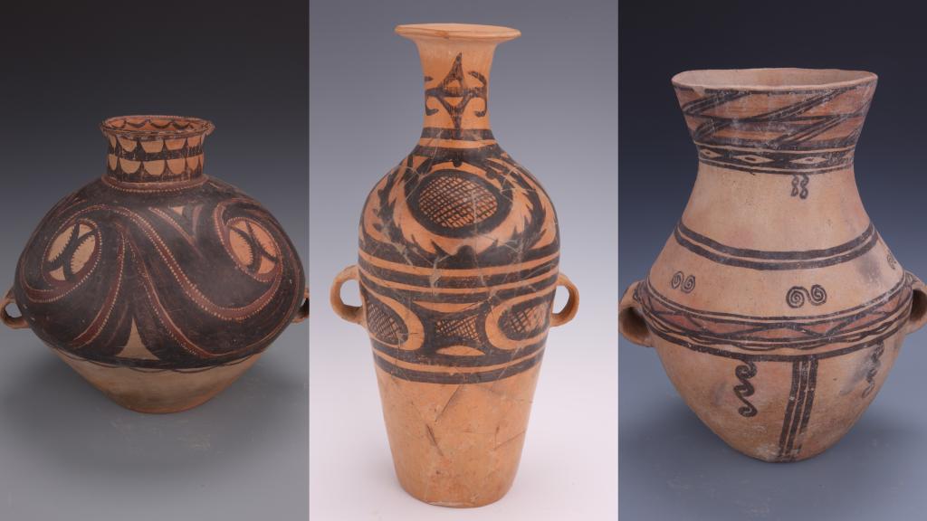 “這些彩陶最早可追溯至距今5000多年前,包括馬家窯文化、齊家文化、辛店文化等,見證了中華文明多元一體格局形成發展的演進歷程。”民族文化宮博物館館長陶穎介紹,其中,屬于仰韶文化石嶺下類型的變體鯢魚紋陶瓶,記錄了史前時期中原仰韶文化向西發展至甘青地區、衍化為馬家窯文化的歷史。