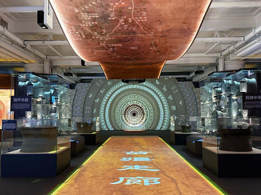 ——更有趣。一面由花瓣組成的古籍墻上,花瓣中藏有200多冊古籍;一面銅鼓周圍,人們觸摸鼓面,展廳內便傳來各民族的音樂交響……