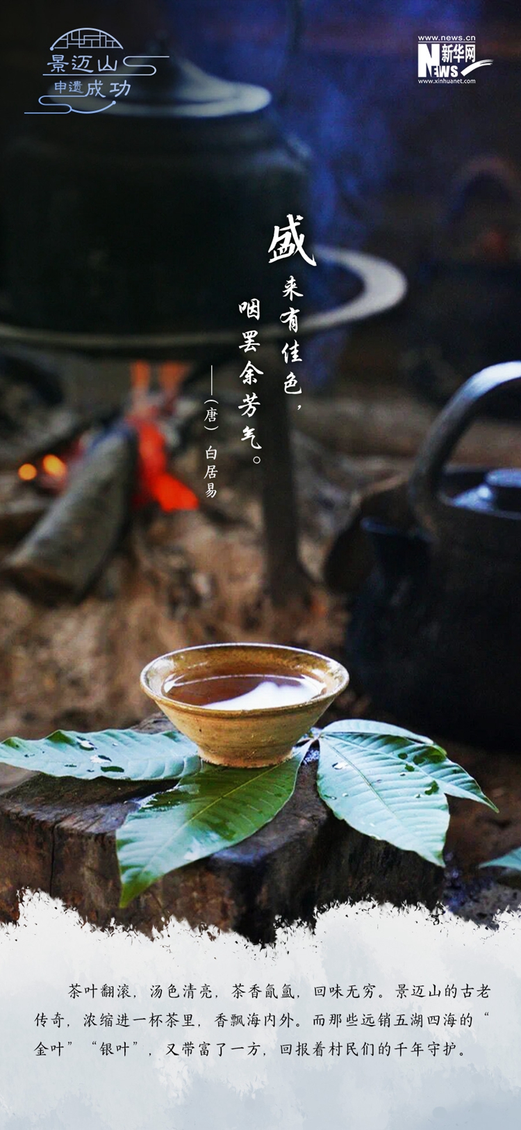 千百年來(lái),生活在景邁山的布朗族、傣族先民以古茶林為核心,對(duì)山區(qū)土地集約利用和合理布局,創(chuàng)造了“茶在林中”“村在茶中”“人茶共生”的智慧型山地人居環(huán)境。景邁山的古老傳奇,濃縮進(jìn)一杯茶里,香飄海內(nèi)外。而那些遠(yuǎn)銷五湖四海的“金葉”“銀葉”,又帶富了一方,回報(bào)著村民們的千年守護(hù)。