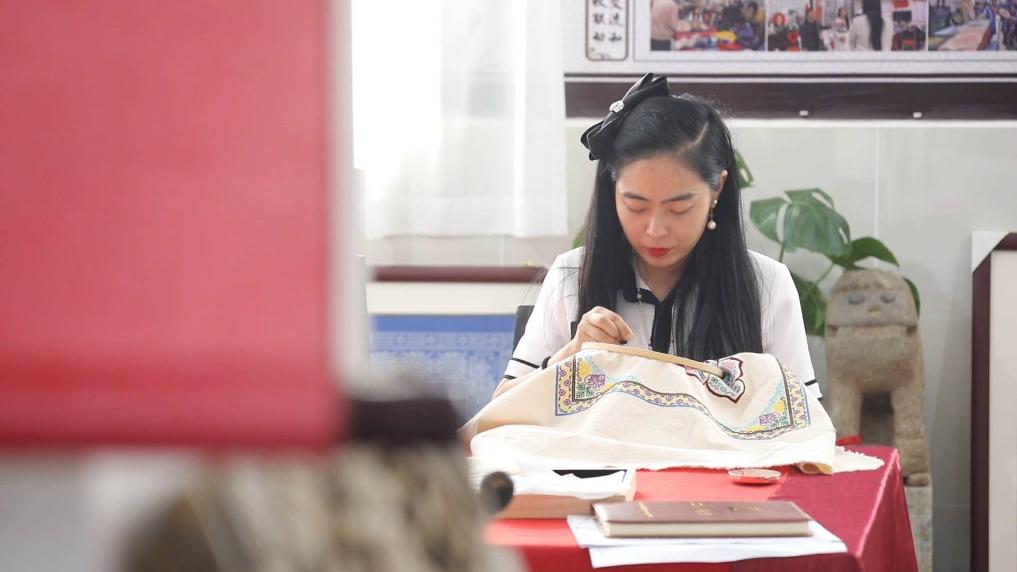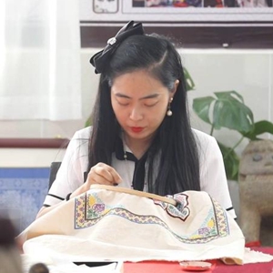 作為城固架花技藝傳承人,丁茹創(chuàng)辦了占地1400平方米的城固架花非遺工坊,這里集傳承、文創(chuàng)、銷售為一體。通過宣傳推廣,非遺工坊的城固架花刺繡作品不僅銷往全國各地,還賣到了新加坡、英國等地,代代相傳的“老手藝”已成為群眾增收、賦能鄉(xiāng)村振興的“金鑰匙”。