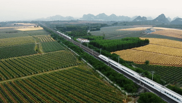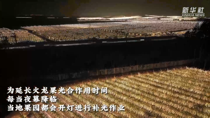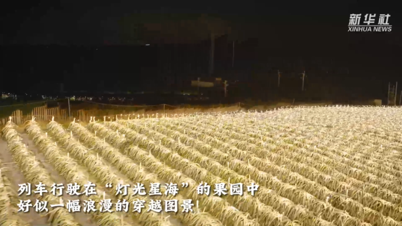 中秋國慶假期,在位于廣西南寧市隆安縣的全國最大火龍果連片種植基地,為延長火龍果光合作用時間,每當夜幕降臨,當地果園都會開燈進行補光作業。夜晚當列車駛過種植基地時,車上乘客都會被景色吸引,紛紛拍照記錄。列車行駛在“燈光星海”的果園中,好似一幅浪漫的穿越圖景。