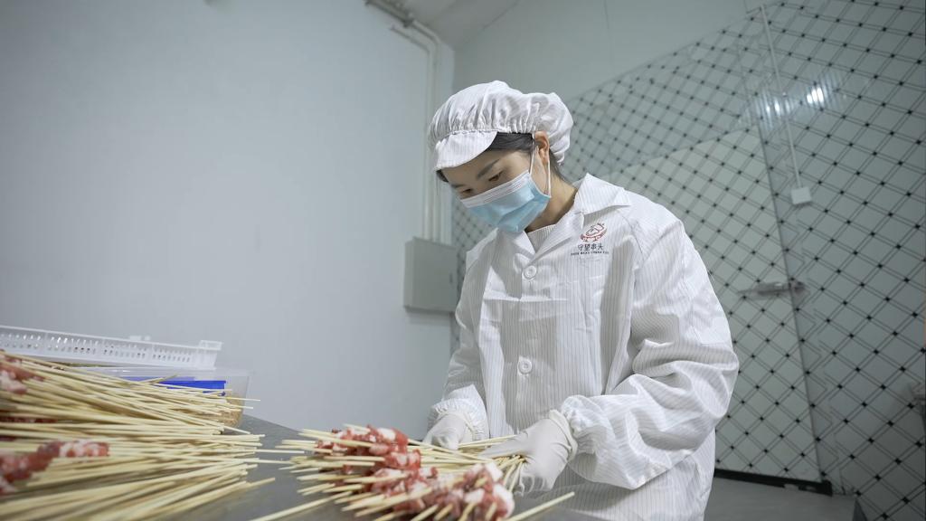 圖為工作人員正在打理昭通小肉串燒烤原材料。(董程鵬 攝)
