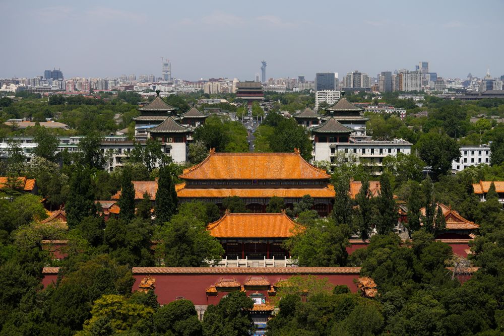 在景山公園上拍攝的北京中軸線風(fēng)光(4月29日攝)。新華社記者 鞠煥宗 攝