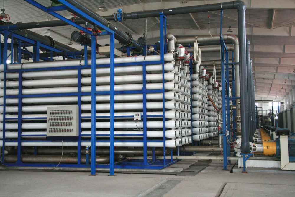 在天津榮程聯合鋼鐵集團有限公司自建的污水處理站里,8個污水池依次排開,初步處理后,污水又經過雙膜深度過濾,生產出達標的工業用水流入車間。