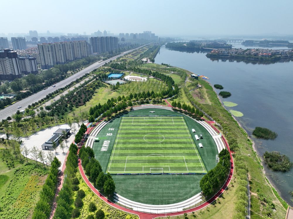 河北省遷安市灤河沿岸風光(2023年7月7日攝,無人機照片)。新華社記者 牟宇 攝