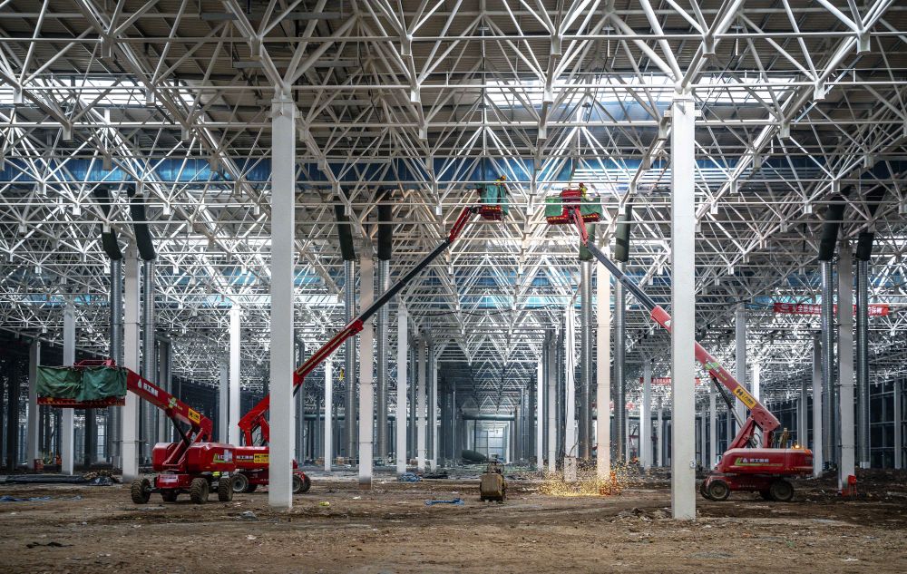 工人在位于長春的奧迪一汽新能源項目建設現場施工(2023年1月31日攝,無人機照片)。新華社發(王勐 攝)