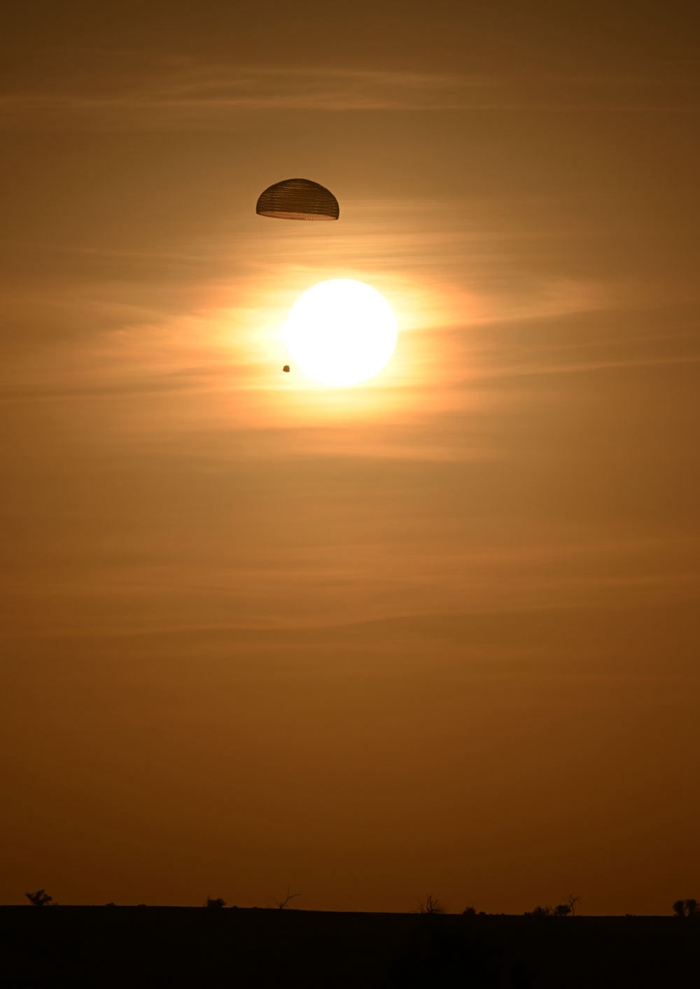 10月31日,神舟十六號載人飛船返回艙在東風著陸場成功著陸。