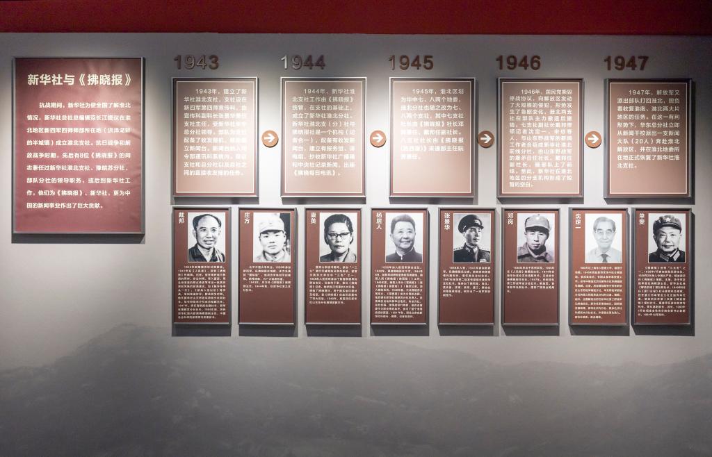 《拂曉報》報史館的“新華社與《拂曉報》”板塊。(拂曉報社供圖)