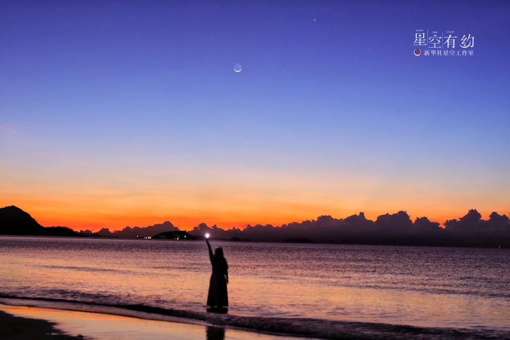 北京星空攝影愛好者黃筱秦2022年7月27日凌晨在海南文昌拍攝的金星伴月。(本人供圖)