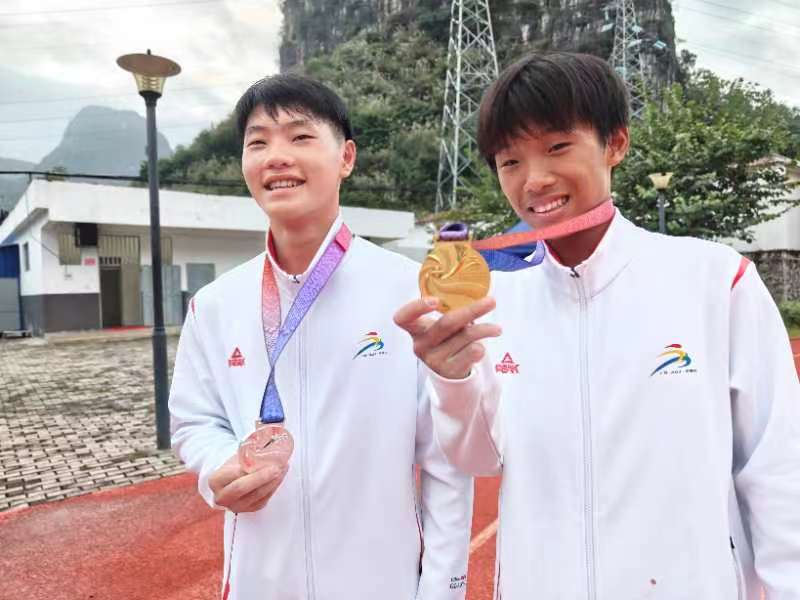 圖為獲得學青會攀巖項目獎牌的兩位馬山小將——黃俊寧(左)與何鑫