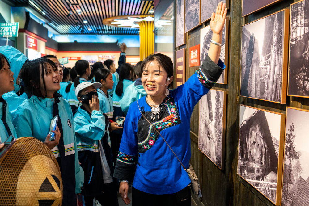 “變化”是施艷琴解說中的高頻詞。苗鄉人曾陷于貧苦,她說起當年的順口溜:“三溝兩岔窮旮旯,紅薯土豆苞谷粑,要想吃餐大米飯,除非生病有娃娃。”