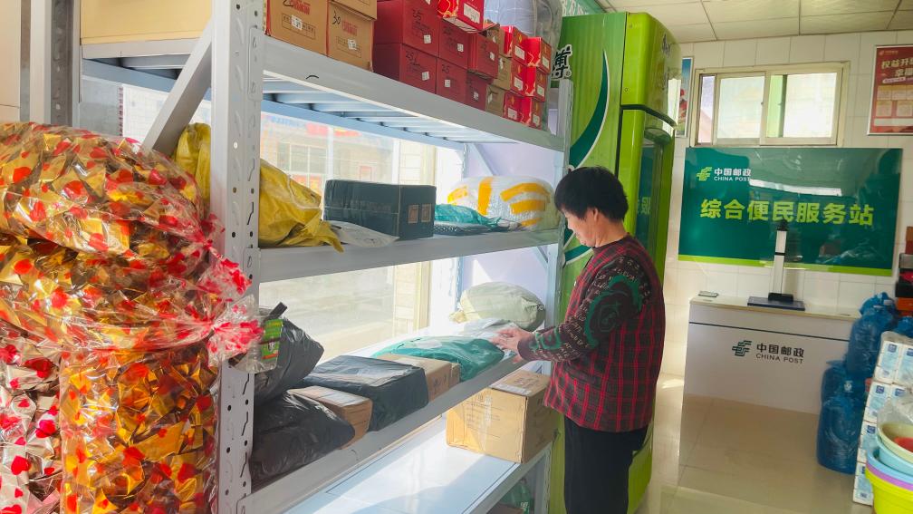 高墩營村綜合便民服務站內,負責人正在整理包裹。新華社記者李杰 攝