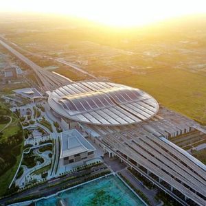 從高空俯瞰,雄安高鐵站外觀呈水滴狀橢圓造型,恰似一滴青蓮上的露珠。從這里出發,19分鐘可達北京大興國際機場,50分鐘可達北京西站,雄安融入首都1小時交通圈。