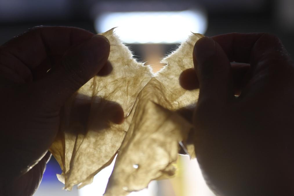 黃宏健展示開化紙的纖維長度。新華社記者 翁忻旸 攝