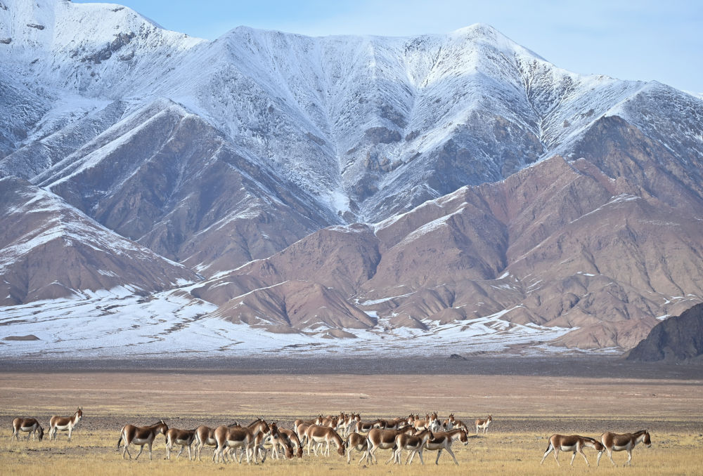 2023年10月16日在新疆阿爾金山國家級自然保護區拍攝的藏野驢(無人機照片)。新華社記者 李響 攝