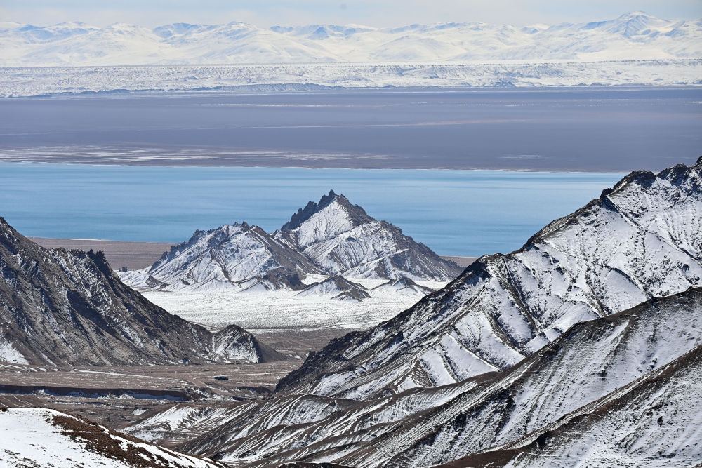 2023年10月18日在新疆阿爾金山國家級自然保護區拍攝的山峰和阿雅克庫木湖。新華社記者 李響 攝