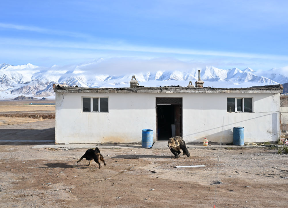 2023年10月17日,一只藏馬熊(右)闖入新疆阿爾金山國家級自然保護區依協克帕提管護站。新華社記者 李響 攝
