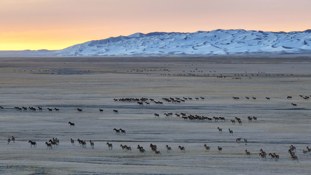 “看!藏野驢正在跟我們賽跑。”循著阿爾金山國家級自然保護區管理局巡護員尚鵬手指的方向,記者看見飛揚的塵土中,數百頭藏野驢正在飛馳。