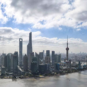 從上海虹口區北外灘空中俯瞰中國(上海)自由貿易試驗區陸家嘴片區(2023年1月10日攝,無人機全景照片)。新華社記者 方喆 攝