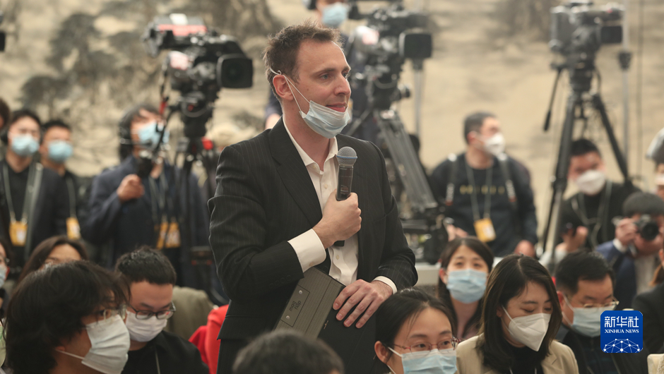3月3日,全國政協十四屆一次會議新聞發布會在北京舉行,大會新聞發言人郭衛民向中外媒體介紹本次大會有關情況并回答記者提問。圖為記者在現場提問。新華網記者 焦鵬 攝