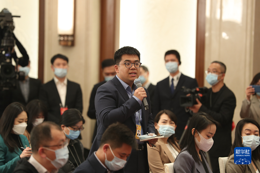3月3日,全國政協十四屆一次會議新聞發布會在北京舉行,大會新聞發言人郭衛民向中外媒體介紹本次大會有關情況并回答記者提問。圖為記者在現場提問。新華網記者 焦鵬 攝