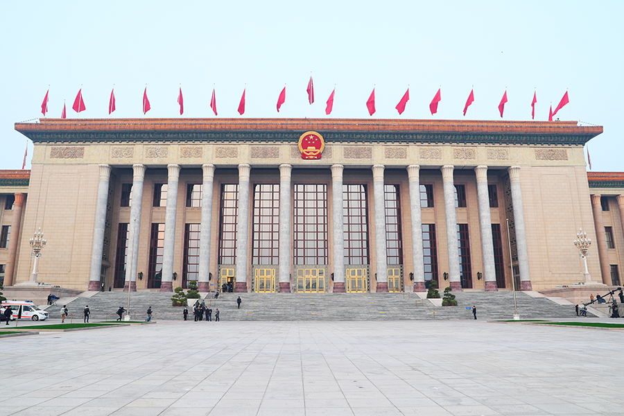 3月5日(星期日)上午9時,第十四屆全國人民代表大會第一次會議在人民大會堂舉行開幕會。圖為人民大會堂外景。(新華網記者 焦鵬 攝)