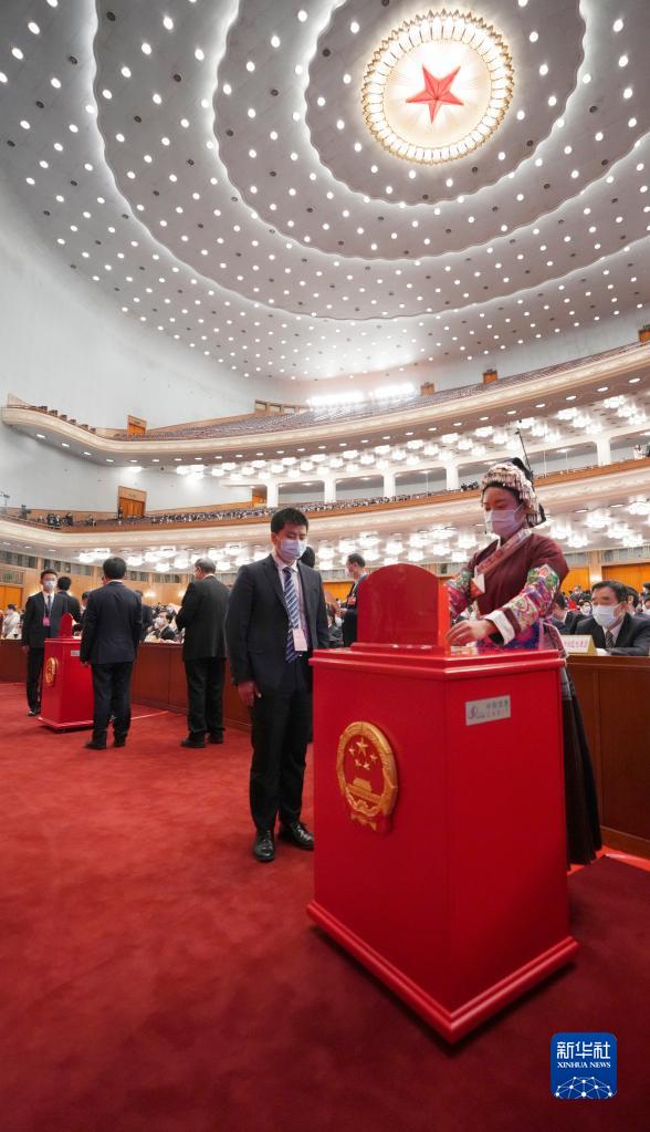 3月10日,十四屆全國人大一次會議在北京人民大會堂舉行第三次全體會議。這是代表在投票。