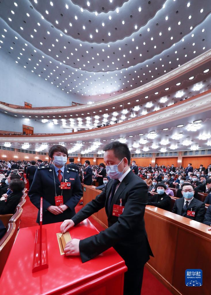 3月10日,十四屆全國人大一次會議在北京人民大會堂舉行第三次全體會議。這是代表在投票。