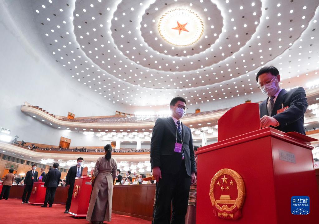3月11日,十四屆全國人大一次會議在北京人民大會堂舉行第四次全體會議。這是代表在投票。