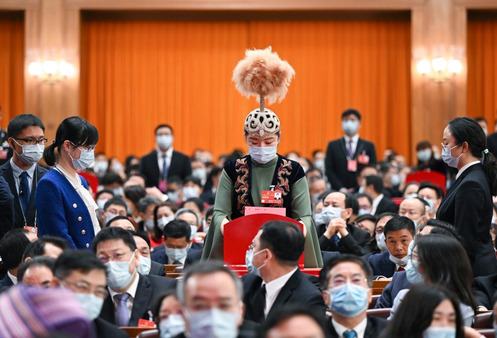 3月11日,十四屆全國人大一次會議在北京人民大會堂舉行第四次全體會議。這是代表在投票。