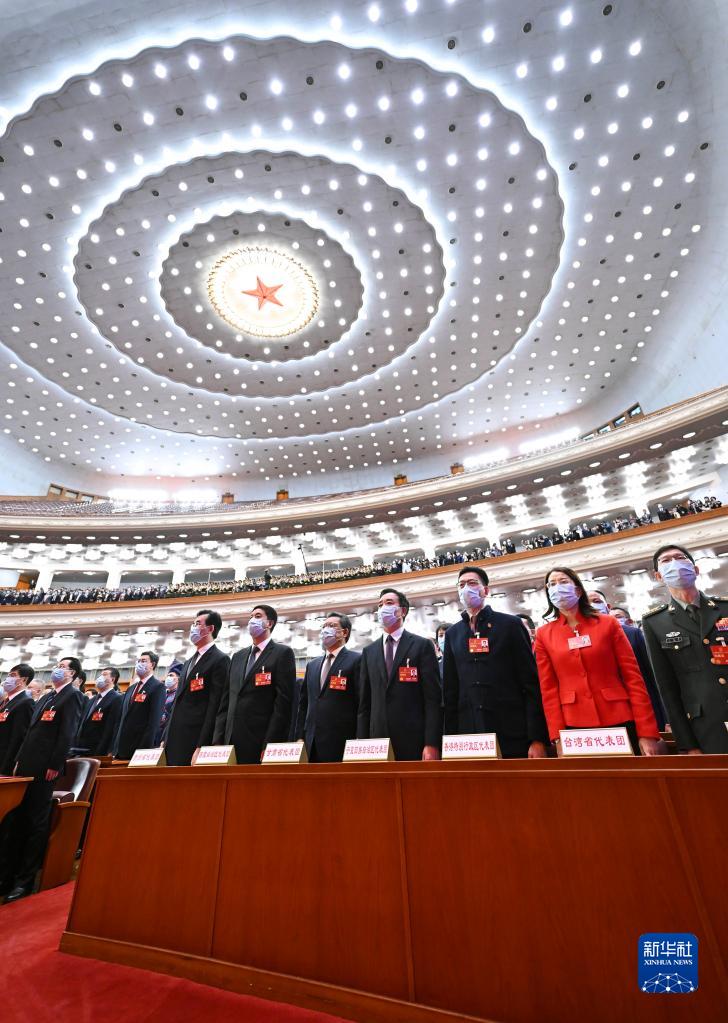 3月13日,第十四屆全國人民代表大會第一次會議在北京人民大會堂舉行閉幕會。這是代表們高唱國歌。