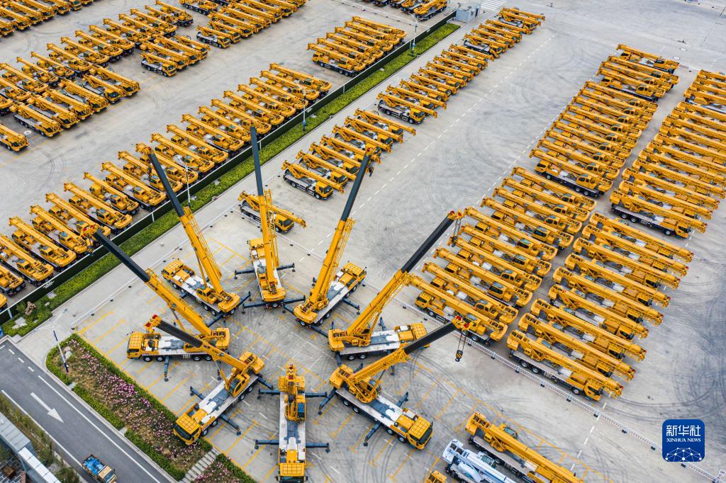 這是2022年5月9日拍攝的江蘇徐工集團重型機械有限公司的產品調試場(無人機照片)。新華社發