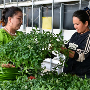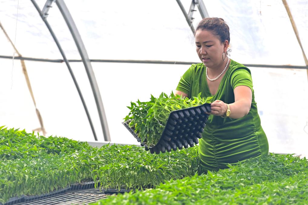 三月将尽,大漠乍暖还寒。坐落于戈壁滩边缘的一座座温室大棚内满目翠绿、暖意融融,米哈热古丽·艾合麦提在一盘盘秧苗间麻利穿梭,额头上的汗珠不时滚落。