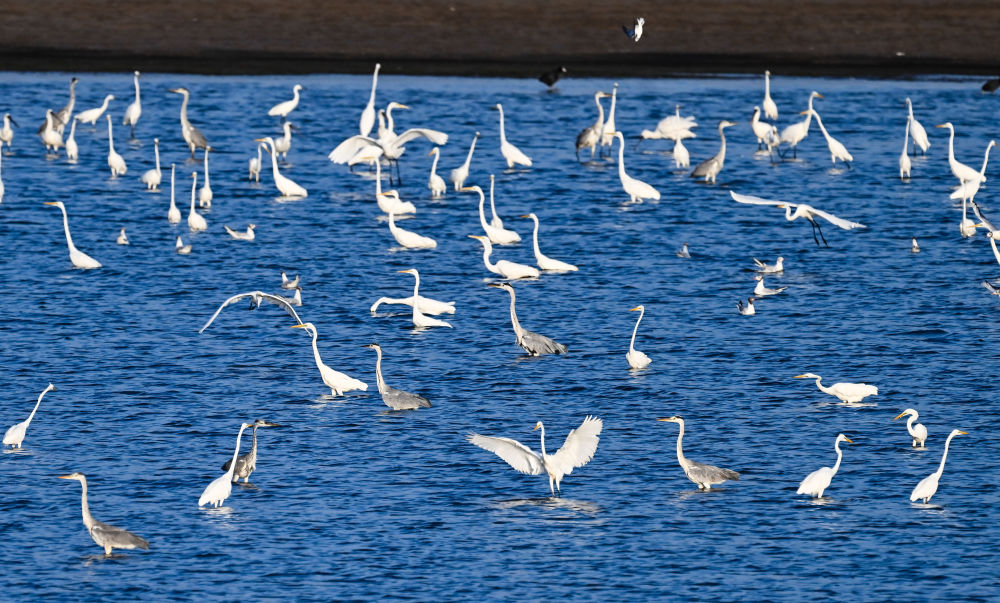 ↑这是在江苏盐城东台条子泥湿地拍摄的群鸟。