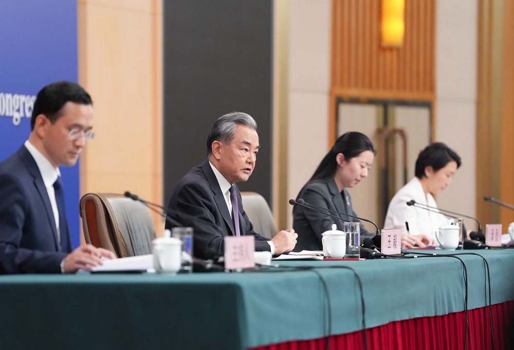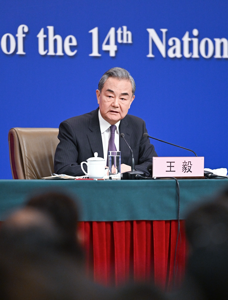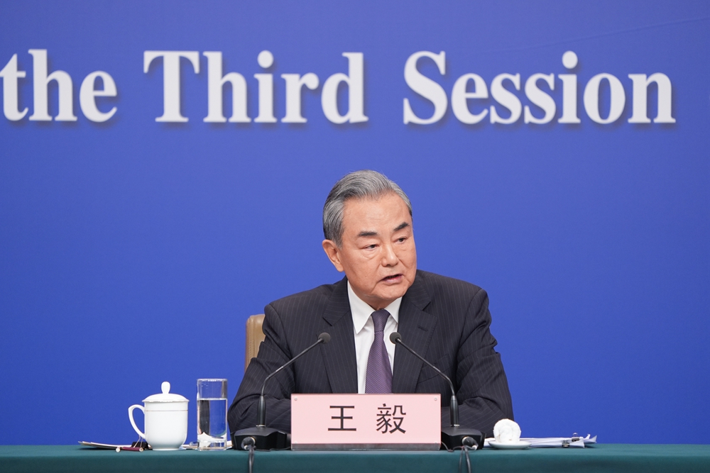 3月7日,十四届全国人大三次会议在北京梅地亚中心新闻发布厅举行记者会。中共中央政治局委员、外交部长王毅就中国外交政策和对外关系回答中外记者提问。 新华社记者 刘大伟 摄