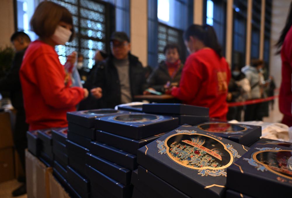 观众在中国国家博物馆排队购买凤冠冰箱贴(2024年12月3日摄)。新华社记者 金良快 摄“春节”申遗成功
