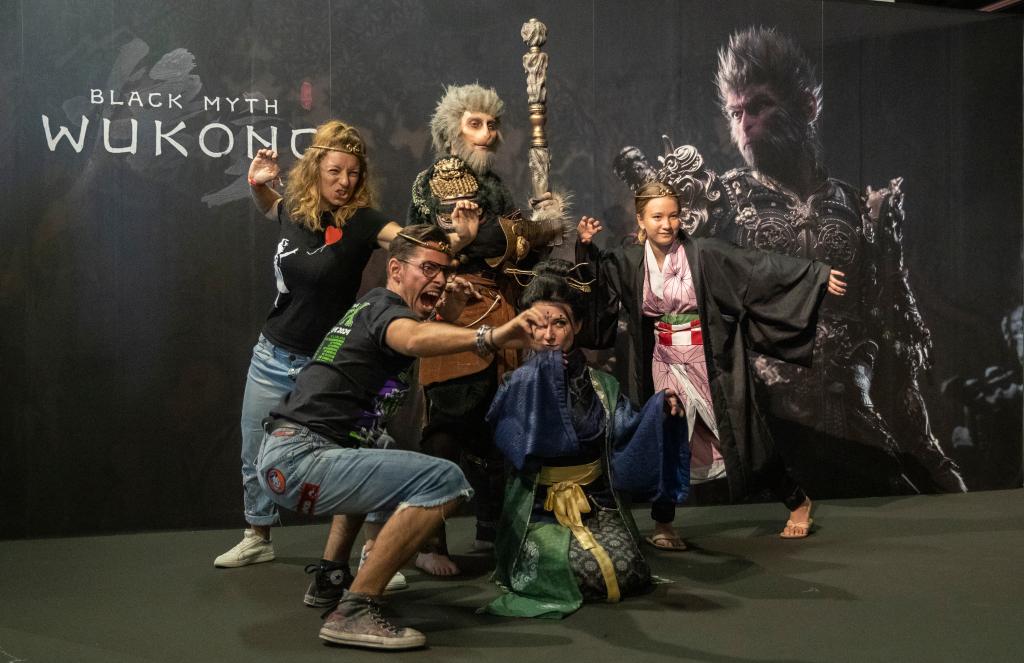 人们在德国2024年科隆国际游戏展《黑神话:悟空》拍照区拍照(2024年8月22日摄)。新华社记者 张帆 摄从非遗的传承保护