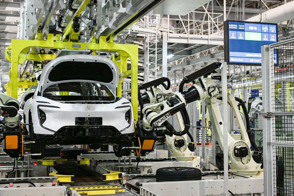2025年3月6日在位于重庆市渝北区的长安汽车数智工厂总装车间拍摄的自动化生产作业现场。新华社记者 王全超 摄