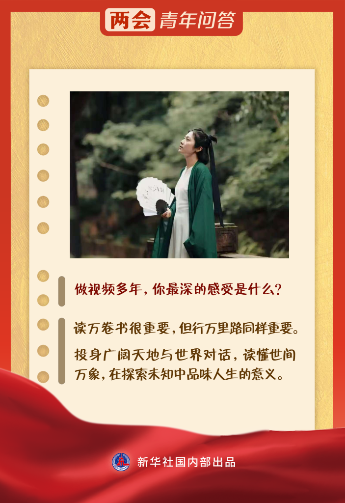吴敏婕:政府工作报告中提出要“激发数字经济创新活力”“加快发展新型文化业态”等内容,这让我更加坚信,作为文化自媒体从业者和文化传播者,既要守住“传统的根”,也要划动“创新的桨”。