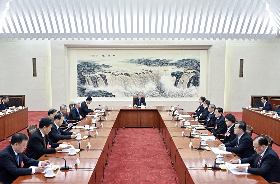 3月11日上午,十四届全国人大三次会议主席团常务主席第三次会议在北京人民大会堂举行。受大会主席团常务主席、全国人大常委会委员长赵乐际委托,大会主席团常务主席、全国人大常委会副委员长李鸿忠主持会议。新华社记者 殷博古 摄