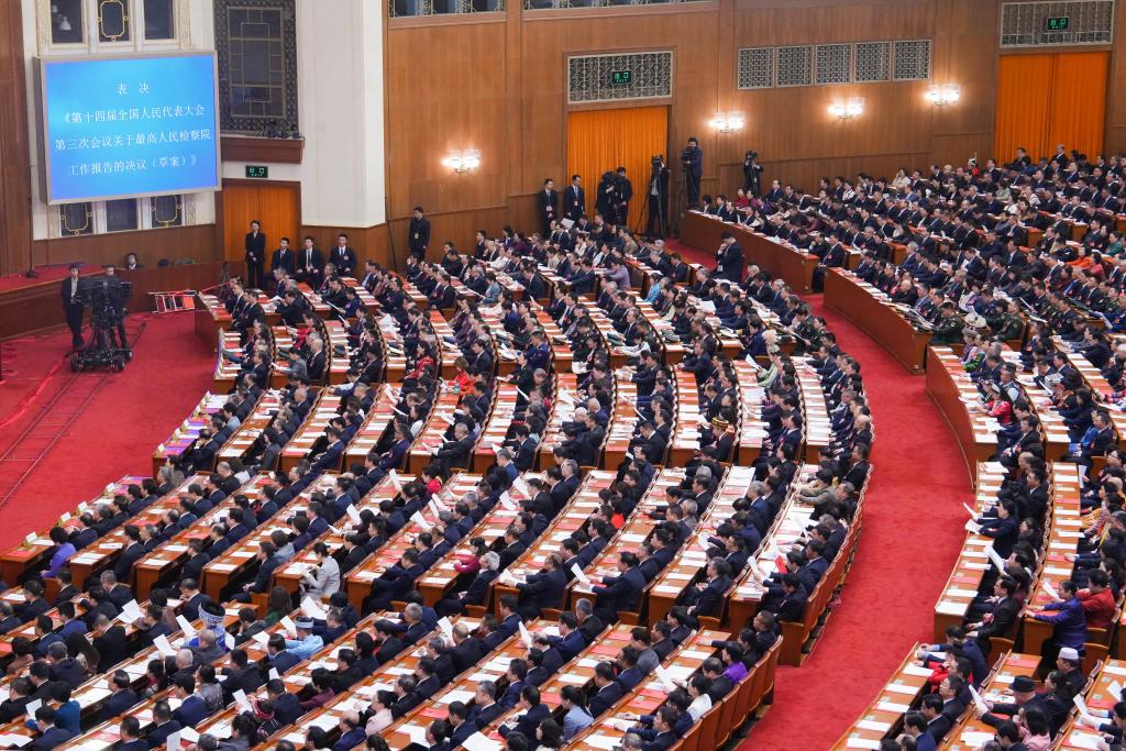 ↑3月11日,十四届全国人大三次会议在北京人民大会堂举行闭幕会。