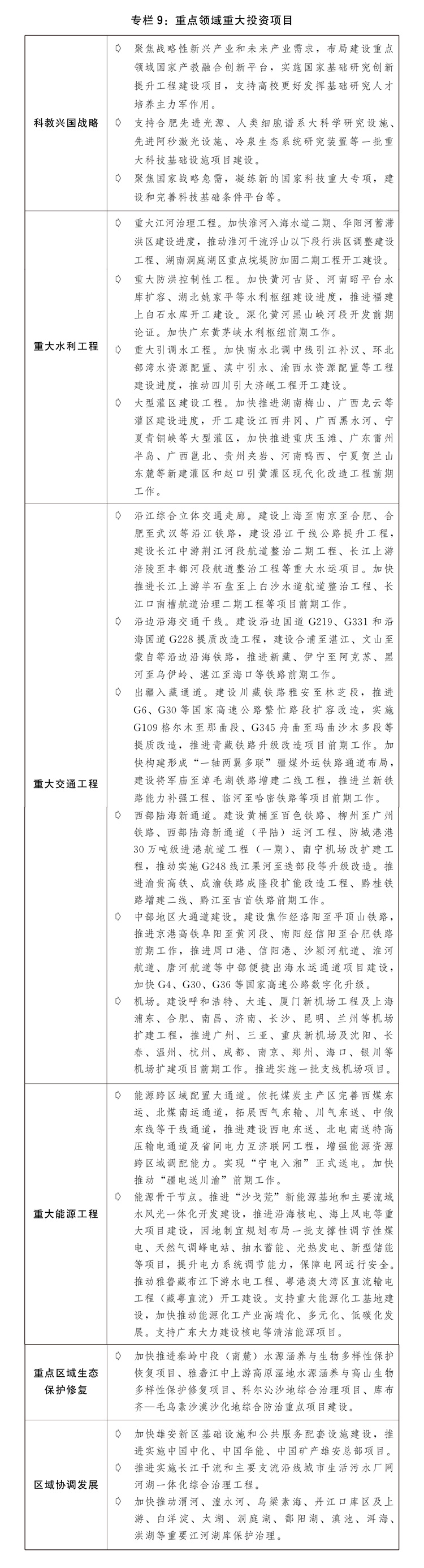 二是扩大有效益的投资。统筹传统和新型基础设施建设、传统和新兴产业发展、“投资于物”和“投资于人”,着力提高投资的经济、社会、生态等综合效益。2025年安排中央预算内投资7350亿元,比2024年多350亿元。扎实推进重大工程项目建设,推动“十四五”规划102项重大工程圆满收官,及早谋划“十五五”重大项目。常态化做好项目谋划储备,加强用地、用海、用能、环评等要素和融资保障,高质量推进项目前期工作和建设实施,尽快形成实物工作量。加快地方政府专项债券发行使用,优化完善专项债券管理机制,额度分配向项目准备充分、投资效率较高、资金使用效益好的地区倾斜,扩大用作项目资本金的领域、比例,实施好投向领域“负面清单”管理、下放项目审核权限等措施,在部分省市开展“自审自发”试点。建立政府投资支持基础性、公益性、长远性重大项目建设长效机制。深化投资审批制度改革,完善项目全周期监督管理机制。更大力度促进民间投资,从放宽准入、权益保护、要素协同、融资支持等方面进一步健全民营企业参与国家重大项目建设的长效机制,常态化向民间资本推介项目,在铁路、核电、水利、生态环保、仓储物流、新型基础设施、公共服务等领域推出一批吸引民间资本参与的重大项目,规范实施政府和社会资本合作(PPP)新机制,推动基础设施领域不动产投资信托基金(REITs)扩围扩容。