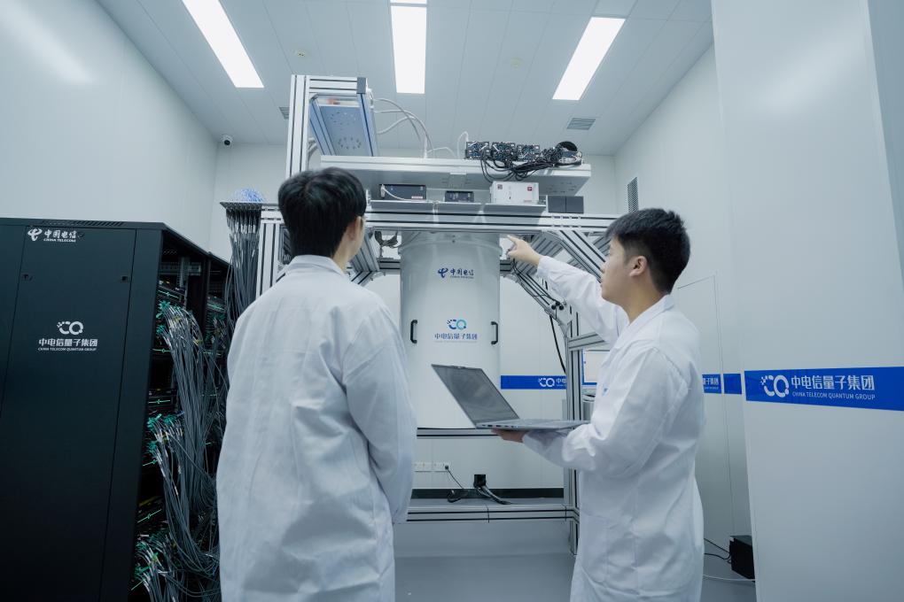 中电信量子集团研发人员正在调试“天衍-504”超导量子计算机。(中电信量子集团供图)