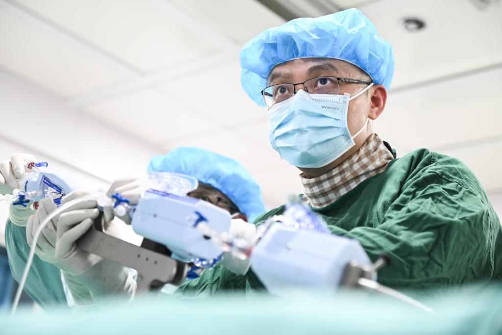 2月20日,在南京市第一医院,张俊杰和团队在心导管室为患者进行经导管二尖瓣缘对缘修复手术。(新华社记者 季春鹏 摄)