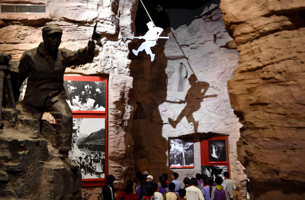 游客在河南省林州市红旗渠纪念馆参观(2023年4月27日摄)。新华社记者 郝源 摄
