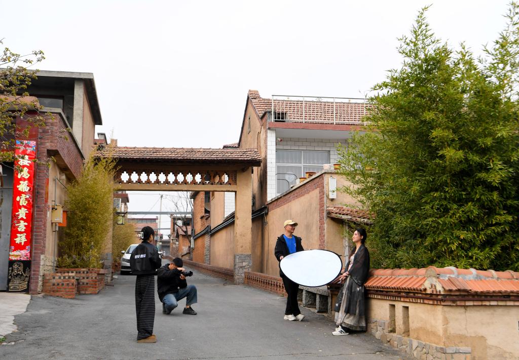 游客在河南省林州市黄华镇庙荒村拍照游玩(2025年3月26日摄)。新华社记者 郝源 摄