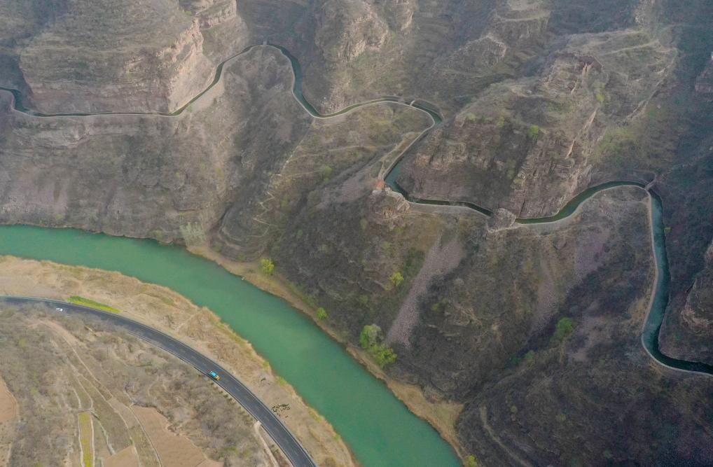 在河南省林州市红旗渠风景区附近拍摄的红旗渠总干渠(2025年3月25日摄,无人机照片)。新华社记者 郝源 摄