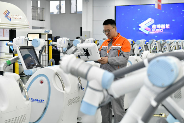 “通过持续研发,我们的协作机器人在多个领域大显身手,销售收入去年突破10亿元,国内市占率超过36%。”遨博(山东)智能机器人有限公司董事长韩永光说。